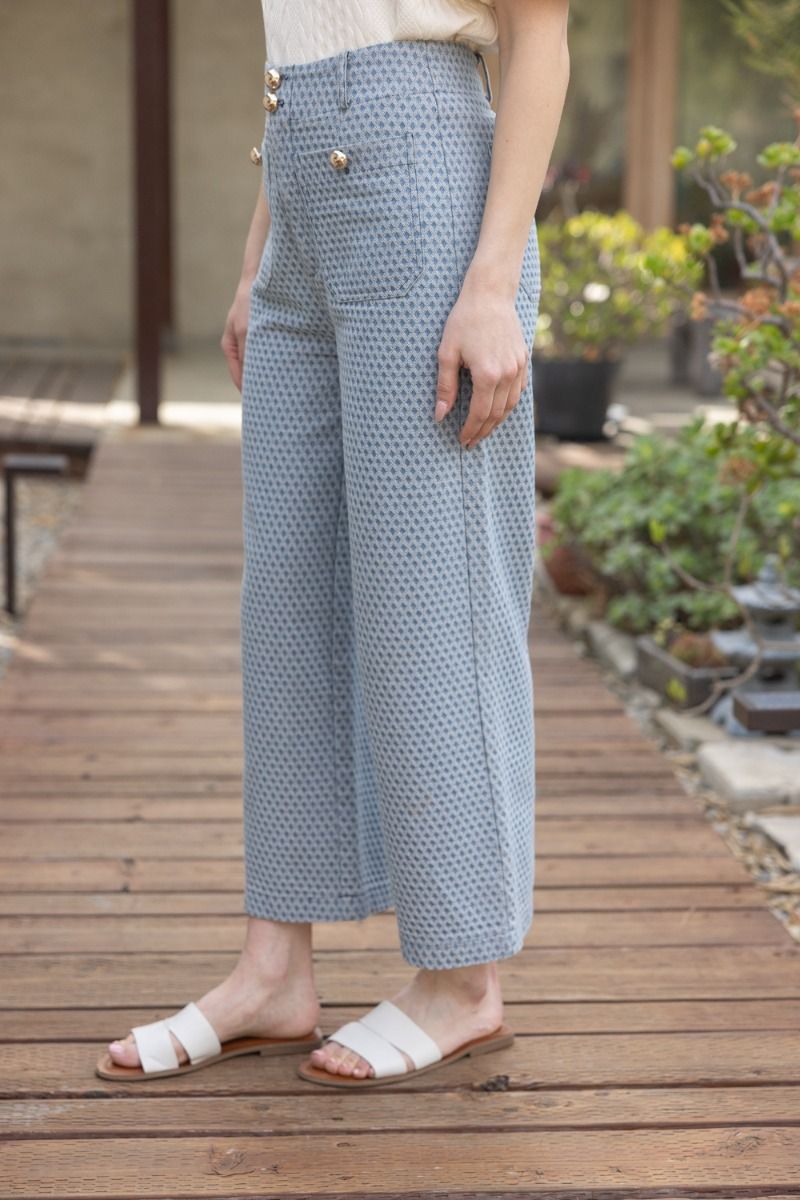 Elevate your everyday style with these effortlessly chic Mini Diamond Print Pants. Designed with a flattering straight-leg silhouette, these pants feature a tailored front button and zipper closure for a polished finish. Functional style meets modern flair with two gold-buttoned front pockets and two subtle back pockets. The woven fabric showcases a delicate mini diamond print, adding texture and elegance to any outfit. Perfect for dressing up or down, these pants are a boutique essential for refined, contemporary wardrobes.